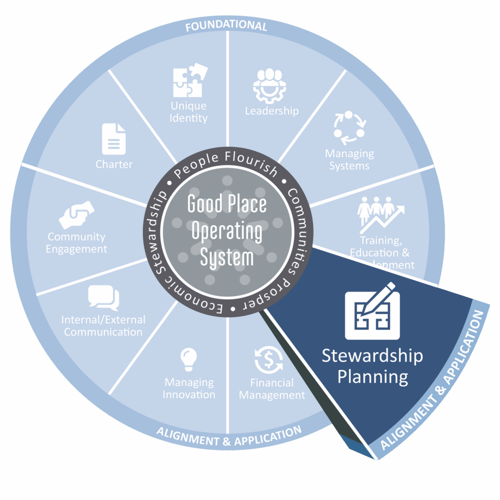 The Stewardship Plan works to answer the question: What can we build with what we have been given and how can we improve upon what we have in a way that achieves the aims of Good Place organizations and remains in alignment with the unique Charter of the organization?